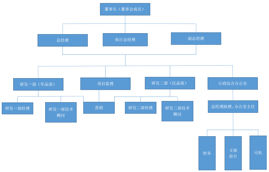 南京香蕉视频网站在线观看测控技术有限公司实施董事会领导下的总经理负责制的现代企业管理制度,全面负责企业的生产、经营、技术、营销等各项管理工作,下设副总、项目监理、军品研发部、民品研发部以及行政办公室。